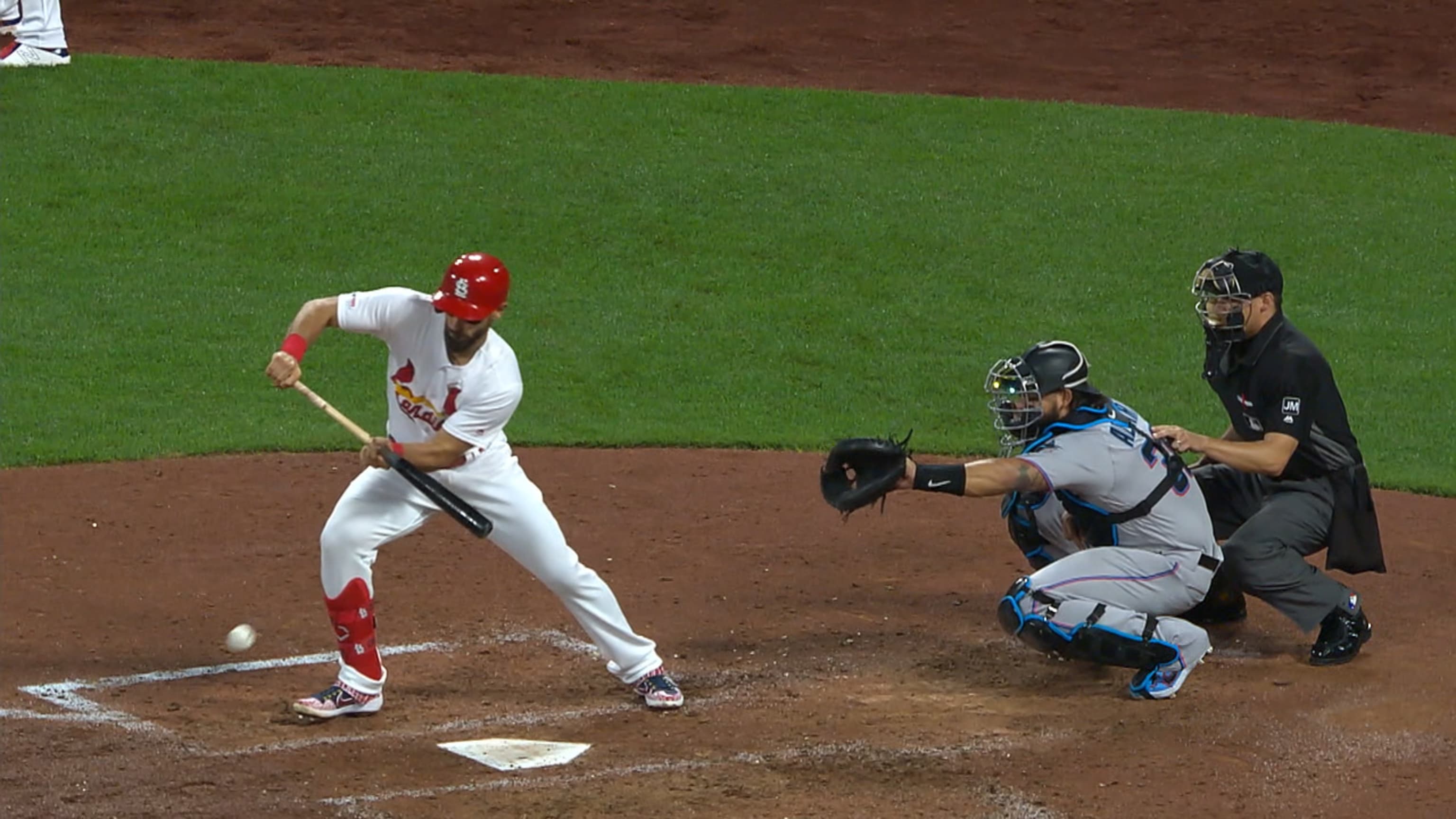 With the entire Miami infield lined up on the right side he dropped a bunt that pitcher Elieser Hernandez was forced. Michael Shapiro Publish date. The Cardinals held a 1-0 lead entering the bottom of the frame.