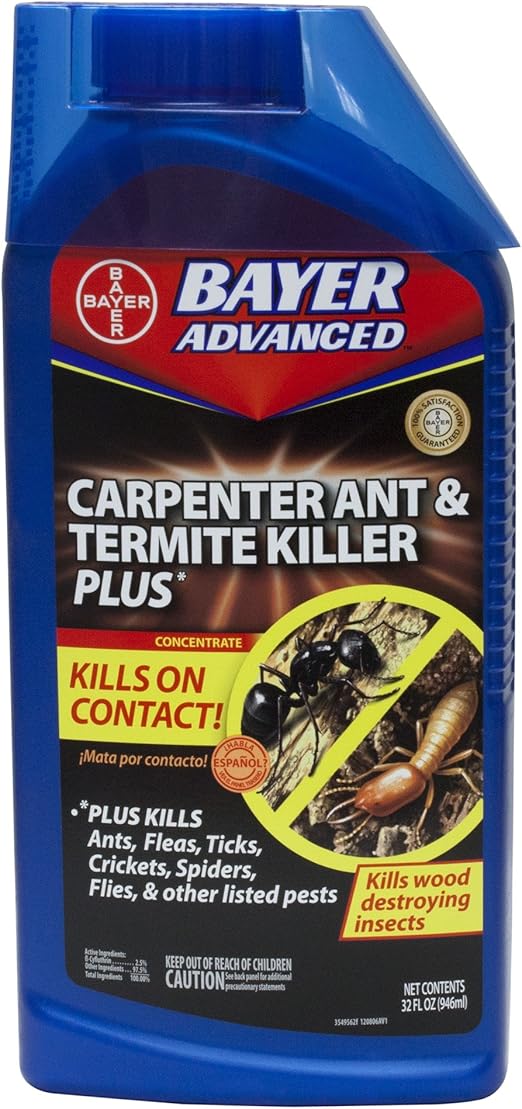 65 432-TX-1 39 58996-MO-1 68 67572 - GA-1 57 071106-GA-003 tThis product is highly toxic to sh and aquatic invertebrates. Bio Advanced Carpenter Ant Termite Killer Plus Concentrate previously known as Bayer Carpenter Ant and Termite Killer Plus Concentrate is a liquid product that kills wood-destroying insects like carpenter ants and termites as well as 75 other pests. Termites Carpenter Ants and Carpenter Bees.